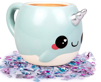 • Want to make your mornings as magical as possible? Now you can with this super-gorgeous and unique glitter Narwhal – Unicorn of the Sea Mug. Her name is Nizzle, the Blue Narwhal and she comes from a magical place beyond the rainbow where Dollop and her friends share some pretty cool adventures!
